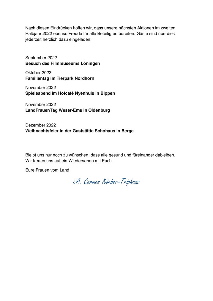 Abschließend bedankten wir uns beim LandFrauenverein Herzlake-Dohren für die sehr herzliche Aufnahme und luden ihn zu einem Besuch bei unserem Verein im kommenden Jahr ein.
